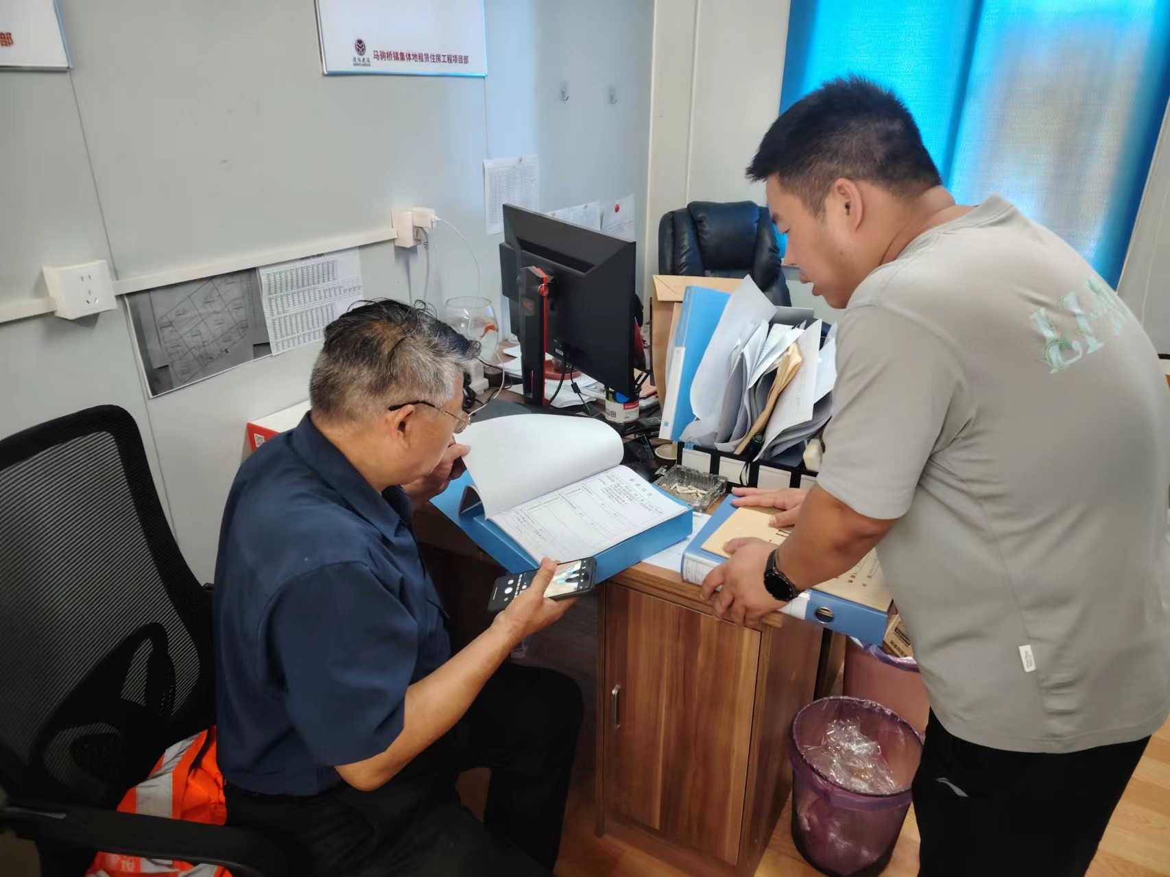 對(duì)現(xiàn)場(chǎng)物資、資料等相關(guān)文件進(jìn)行抽查查驗(yàn)。