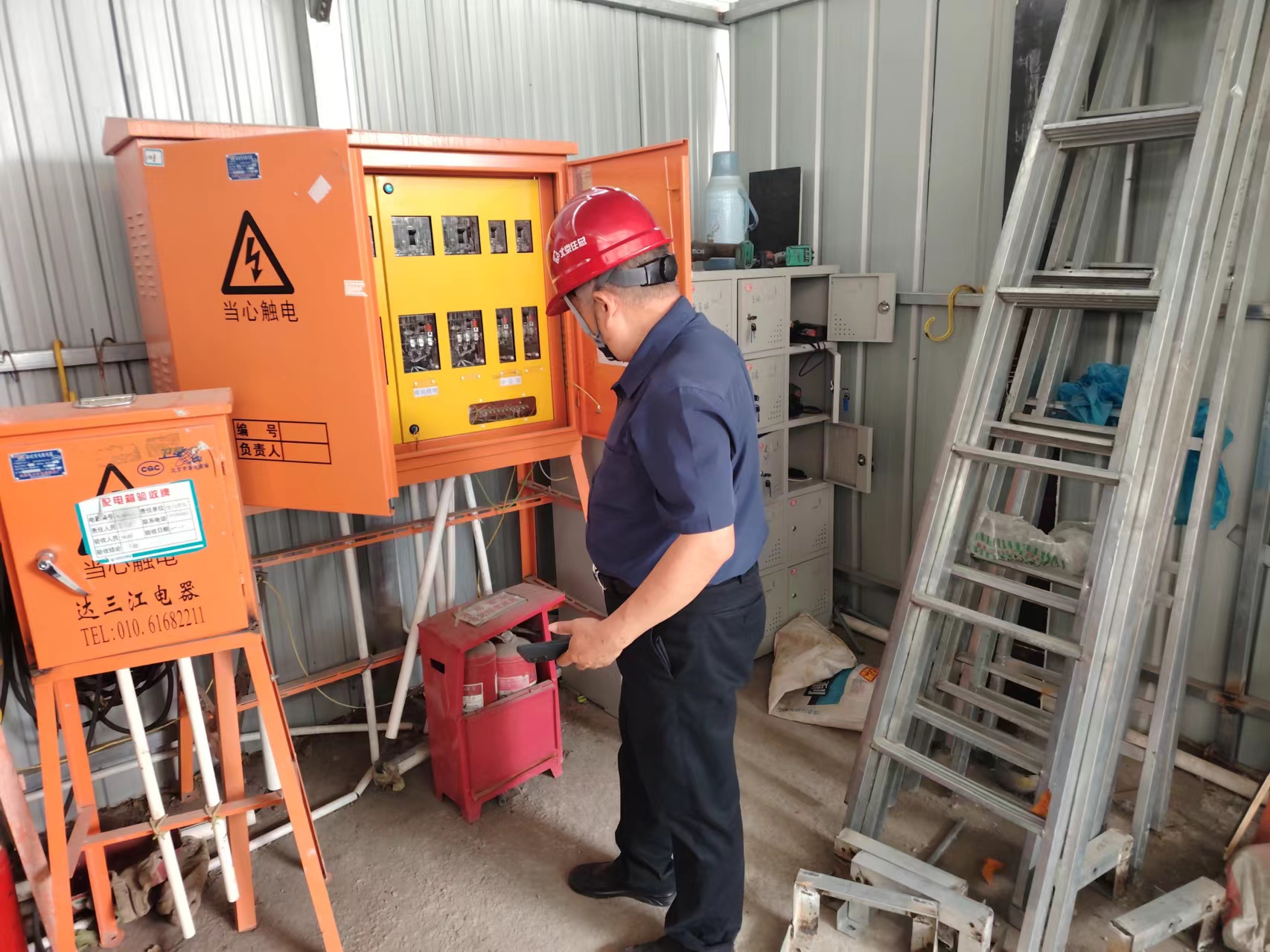 對(duì)現(xiàn)場(chǎng)安全用電以及物資進(jìn)行檢查。